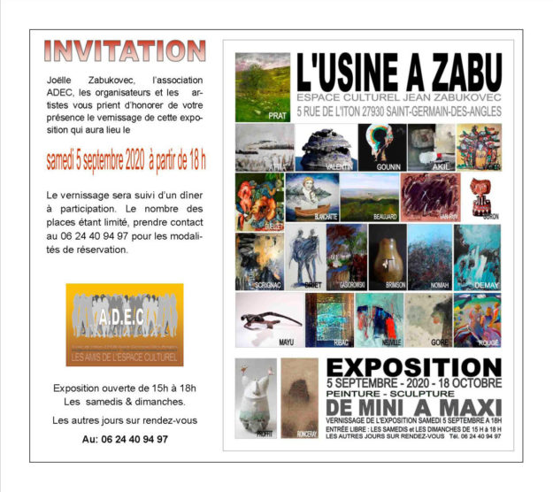 Espace Culturel Jean Zabukovec – Saint-Germain-des-Angles (27) du 5 septembre au 18 octobre 2020